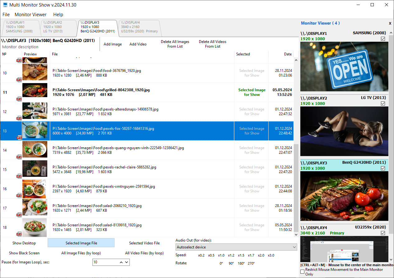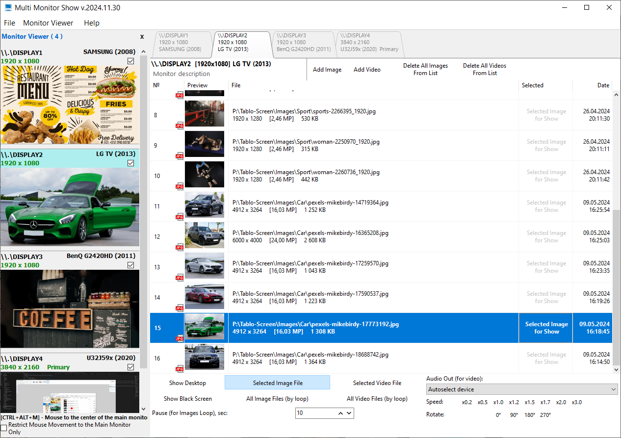 - Pause (sec.) for changing images in a loop independently for each monitor.